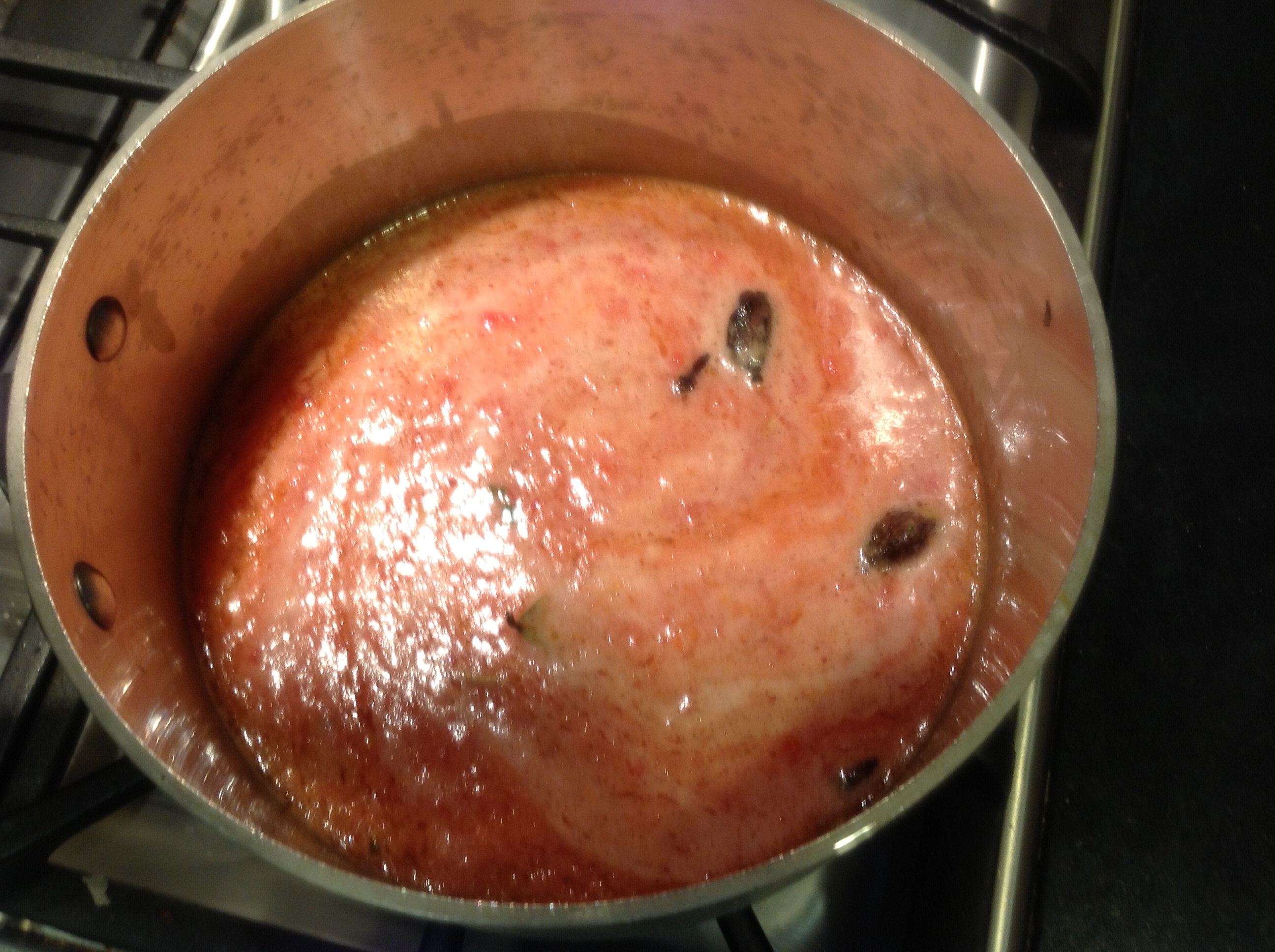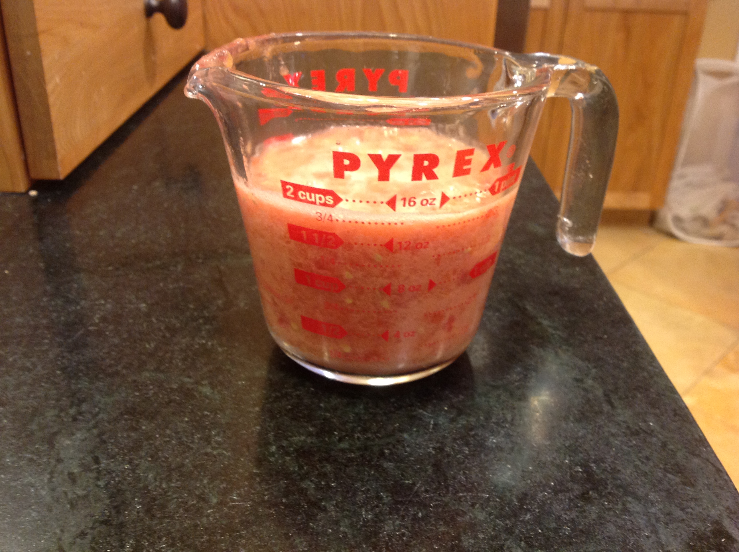 - 2 cups tomato puree, made by simply halving about 5 tomatoes and giving them a spin in the blender