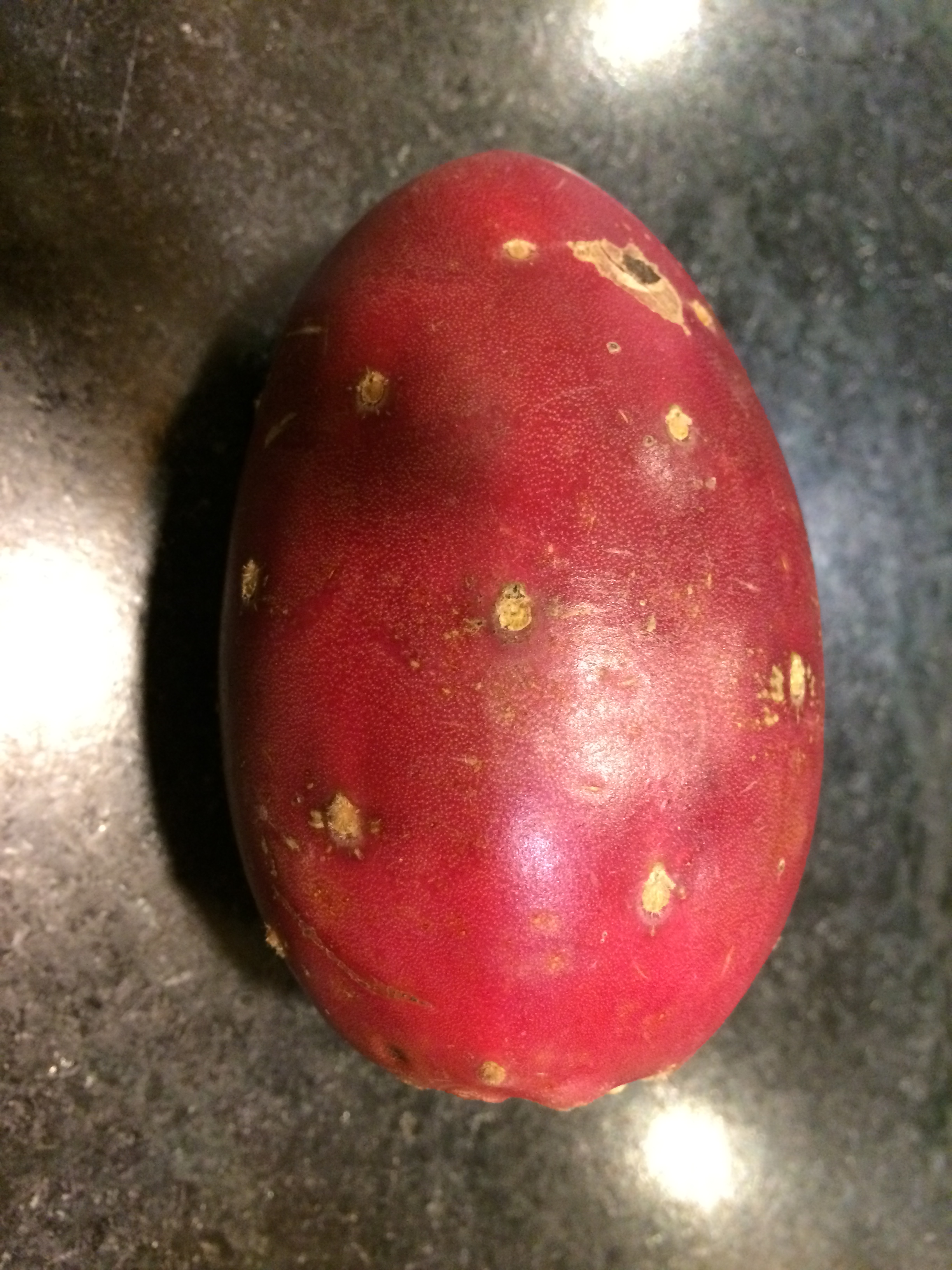 The man at the stall was nice enough to tell me that this was a cactus fruit. Now cactus plants are a bit of a strange beast for me, in the sense that I can’t easily place them in the plant family. Is that big fleshy thing supposed to be a leaf or a stem? Do they fruit? Why does the fruit appear stuck to the blade of what appears to be a leaf?¹