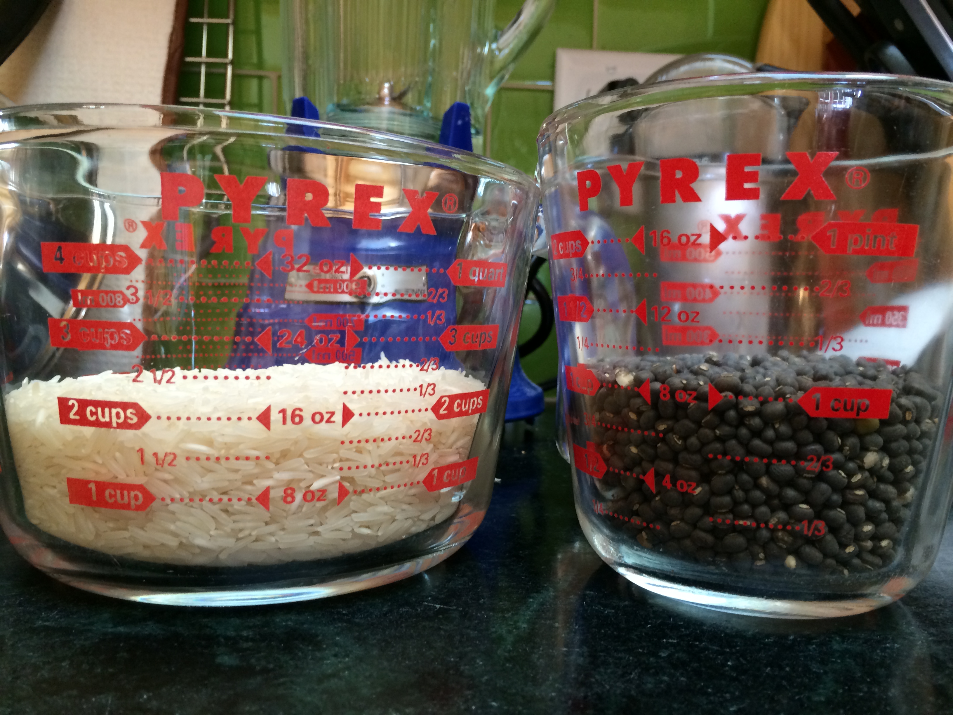 At the end of this time, the rice will have almost doubled, while the beans will have almost tripled. The black gram beans will have become lighter into a green, as seen below: