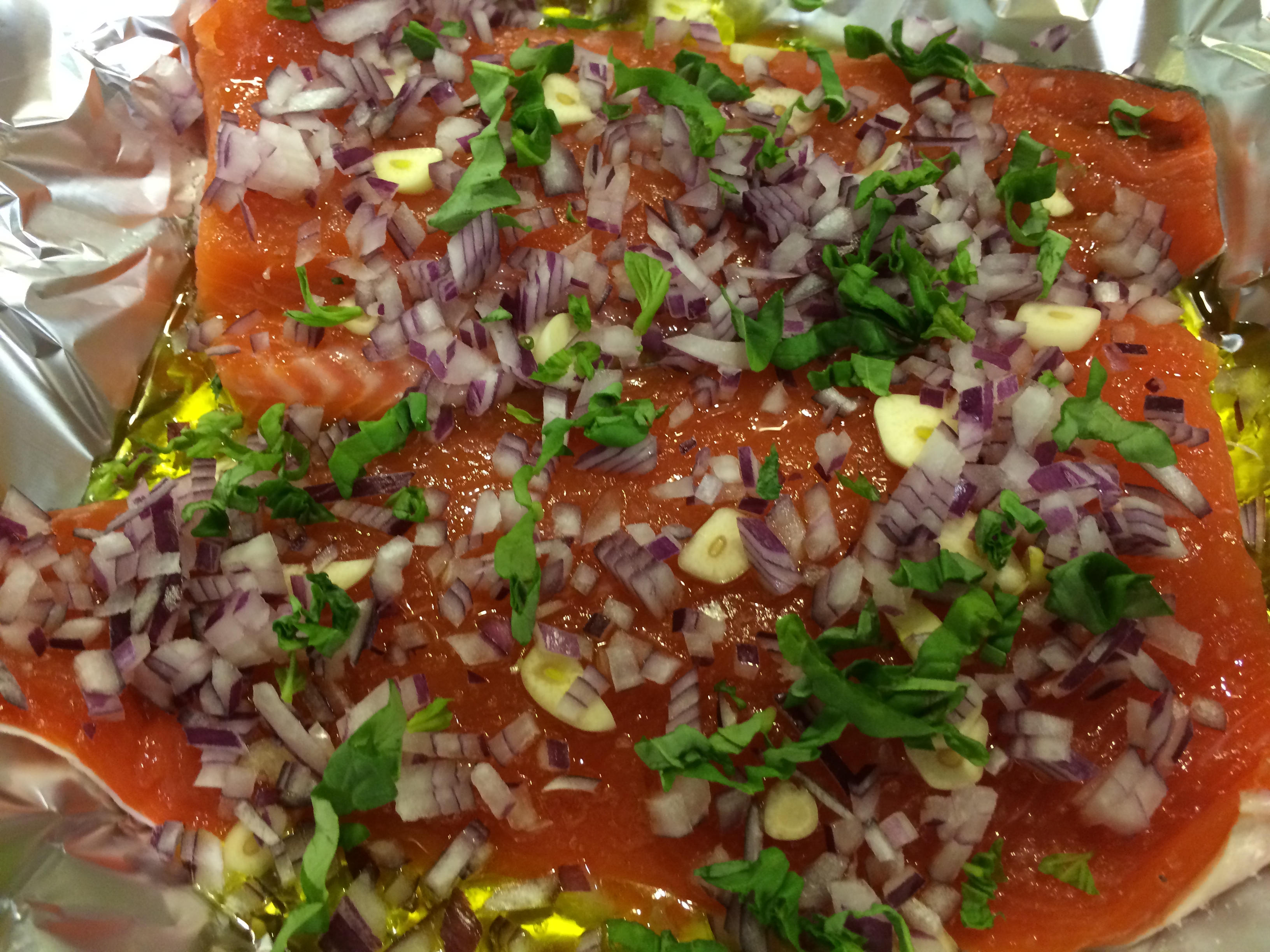 To everyone’s astonishment (and relief), this meal actually has more to it than just ginger. The base is a poached fish: it could be halibut, or cod, or other white fish. Most people recommend very subtle accoutrements for poached fish in order to not drown out its mild flavor; but that is not what I did. As is my wont, it is often the seasoning that is the highlight of a meal, and the poached fish performs the function here of a nice inoffensive background.