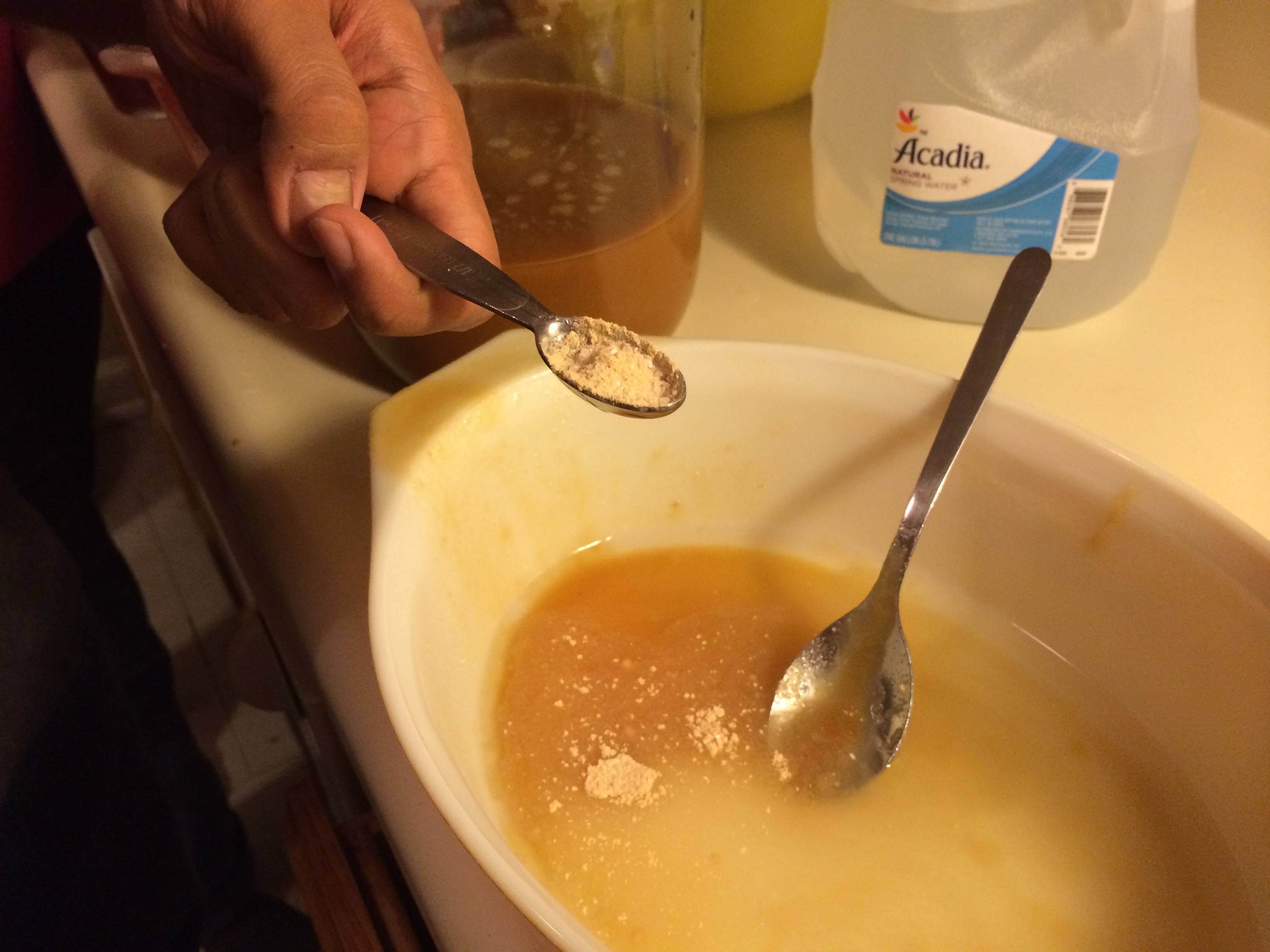 Cover the platter with cheesecloth and place at a sunny window. My window only gets sun for about an hour in the mornings and that seemed to be enough. Every couple days, give it another mixing with a scrupulously clean spoon.