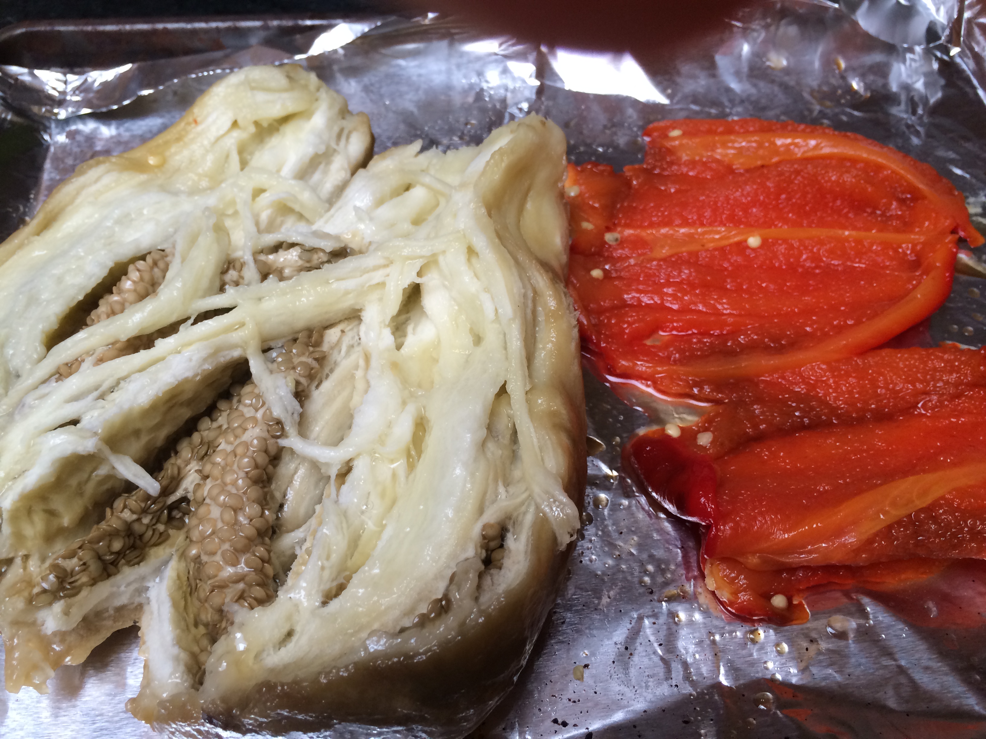 The great advantage of the long-roasted sauce is that the peel and seeds all go in, impart a caramelized edge, and yet, deep pockets of juiciness are left behind; as the oven has not dried out the fruit indiscriminately. The residue one is left with is approximately like a hybrid of sundried tomatoes on the cut-surfaces, and deep juice bombs inside.
