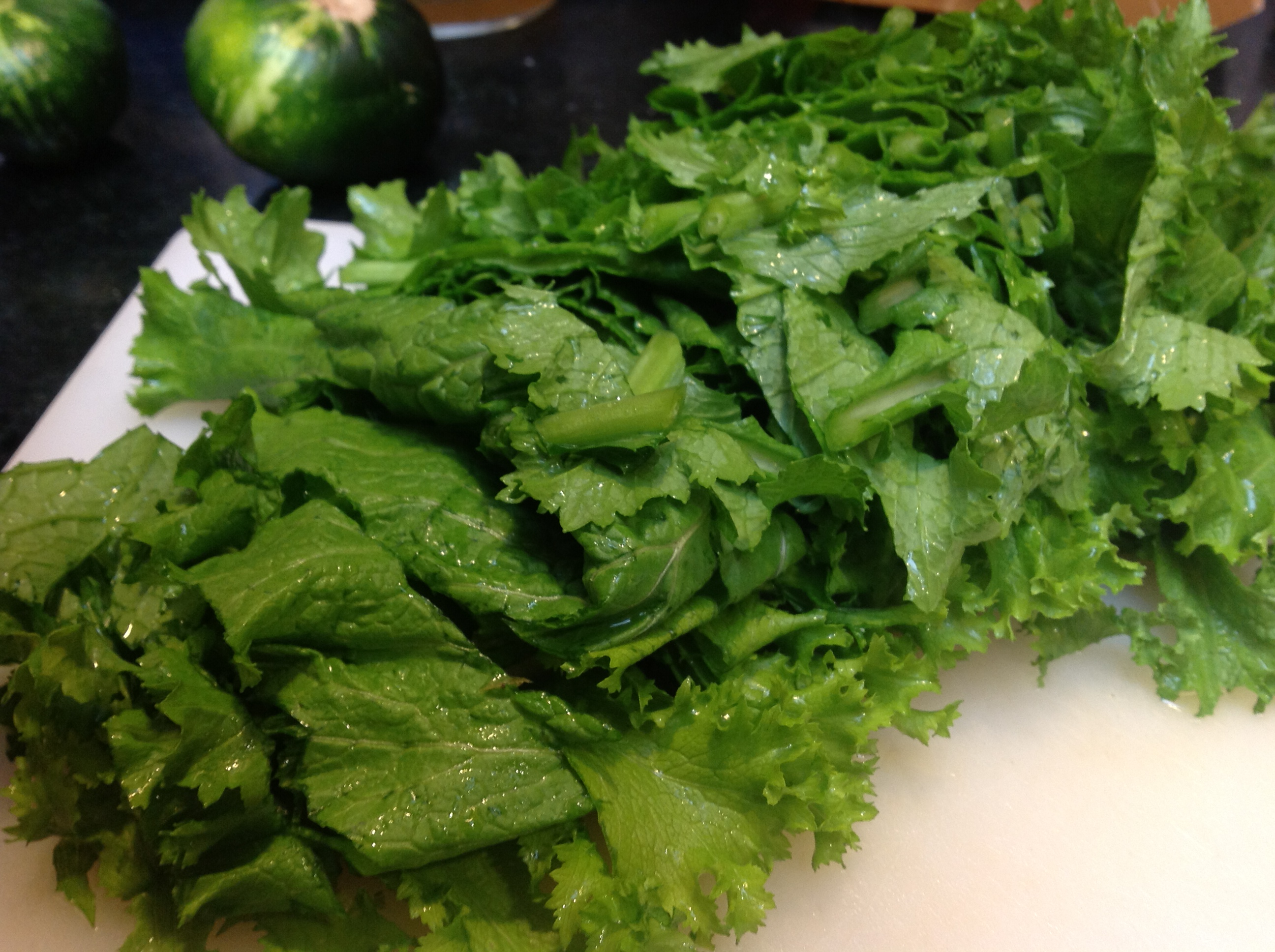 Slice the basil leaves into ribbons.