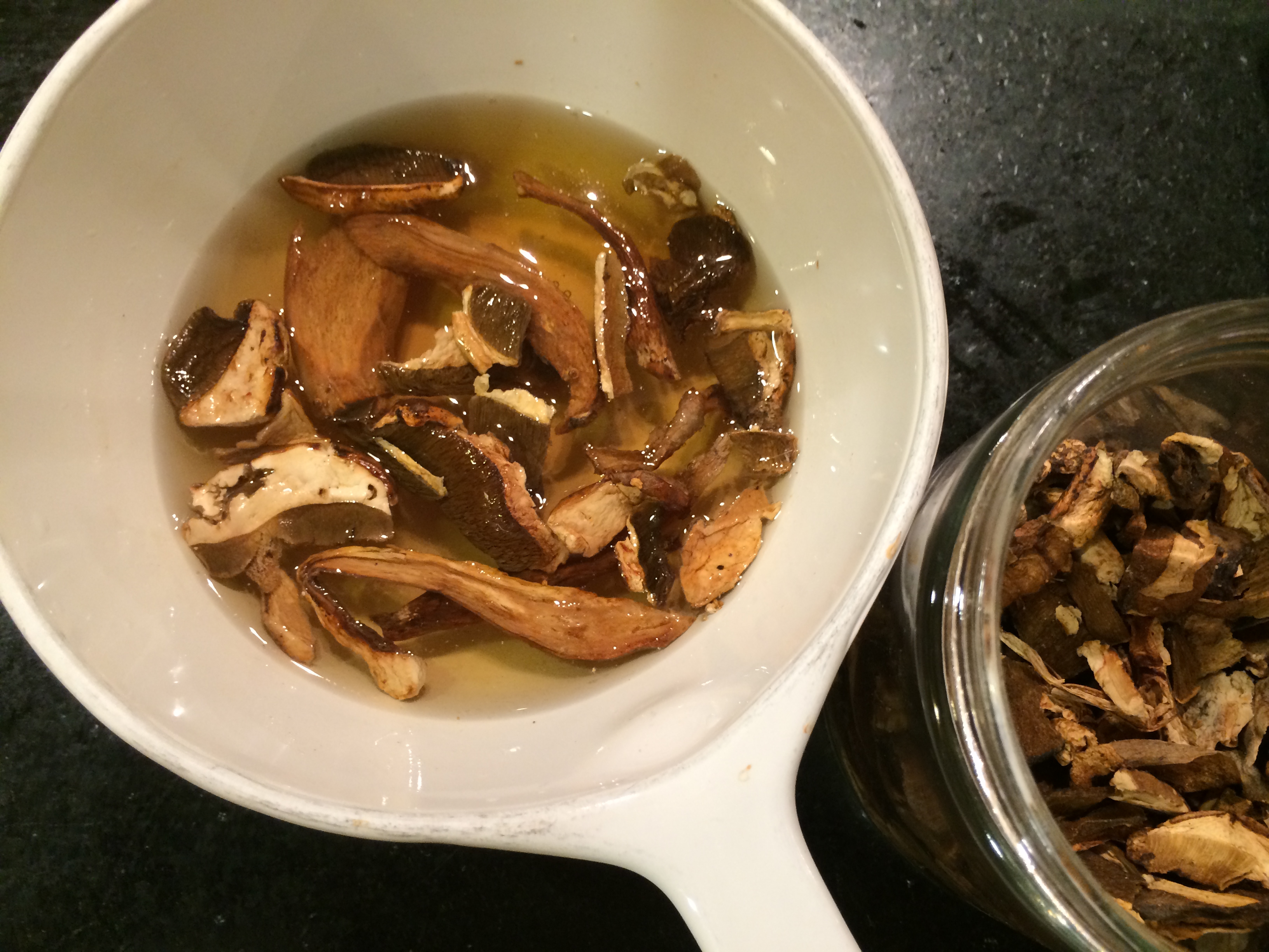 Spread some oil on a flat ceramic dish. Quarter the Kumato tomatoes and halve the cherries. Spread them tightly crowded on the dish, tucking the cherry halves into the gaps between the others. Sprinkle with salt and more olive oil. Reserve about 3 tablespoons of olive oil for later.